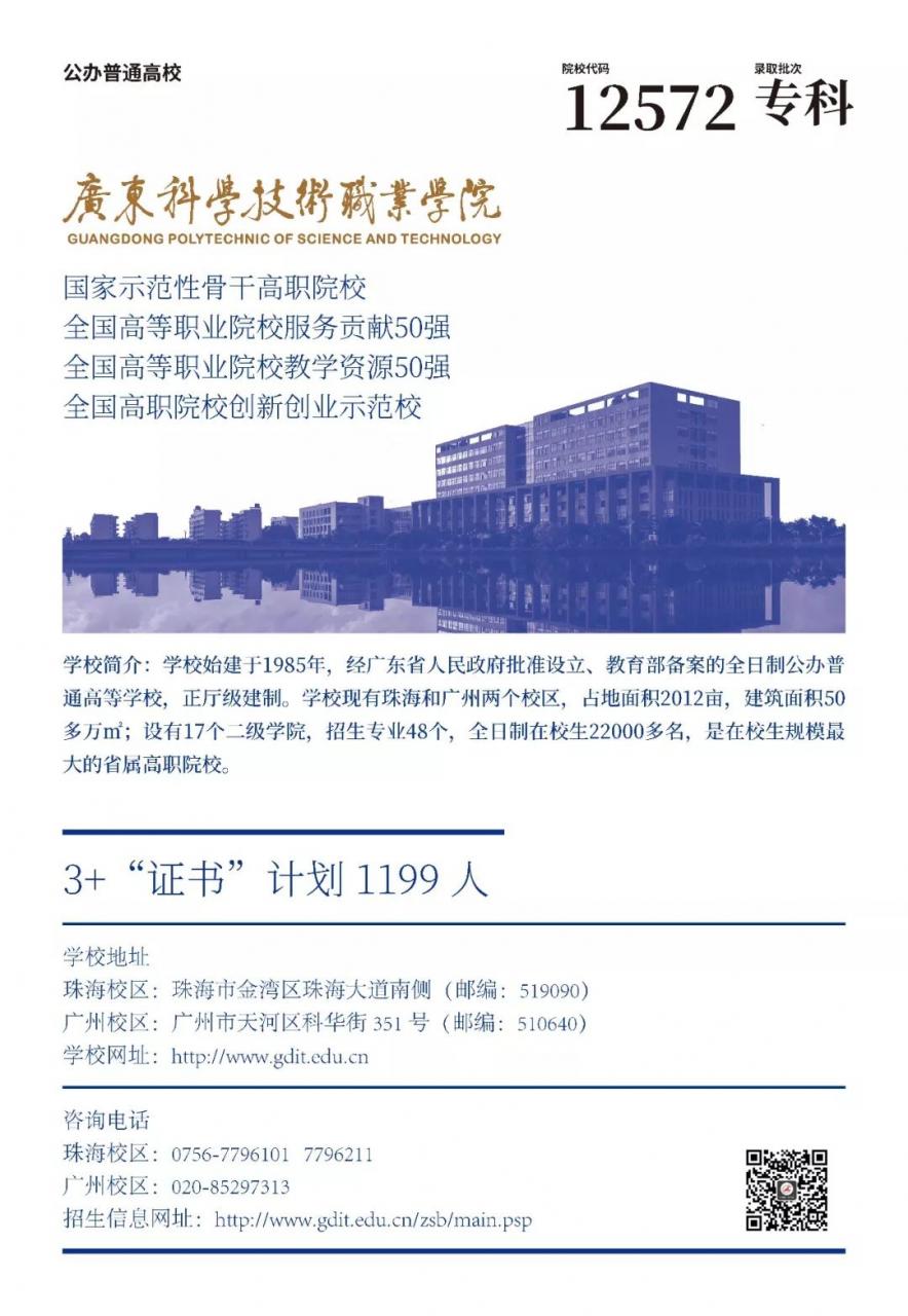2019年广东科学技术职业学院 “3+证书”招生计划