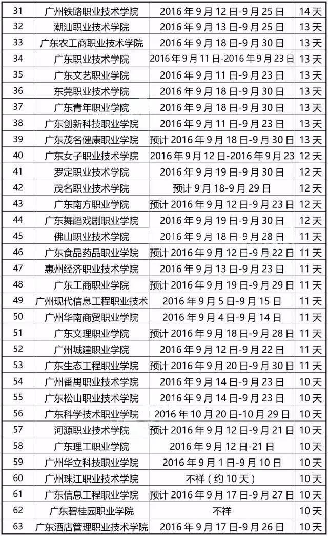 广东高职院校军训时间表排名包含广东在内的多所高职学校!