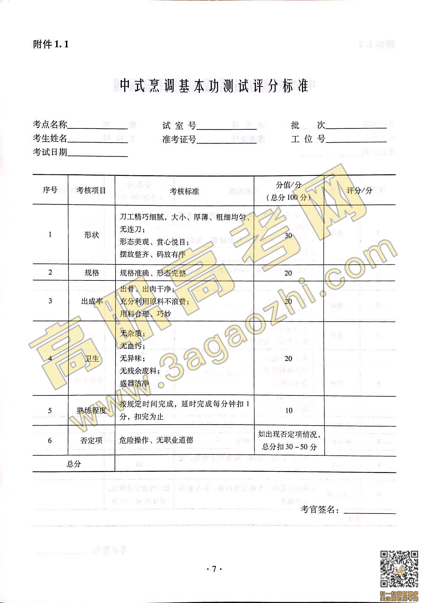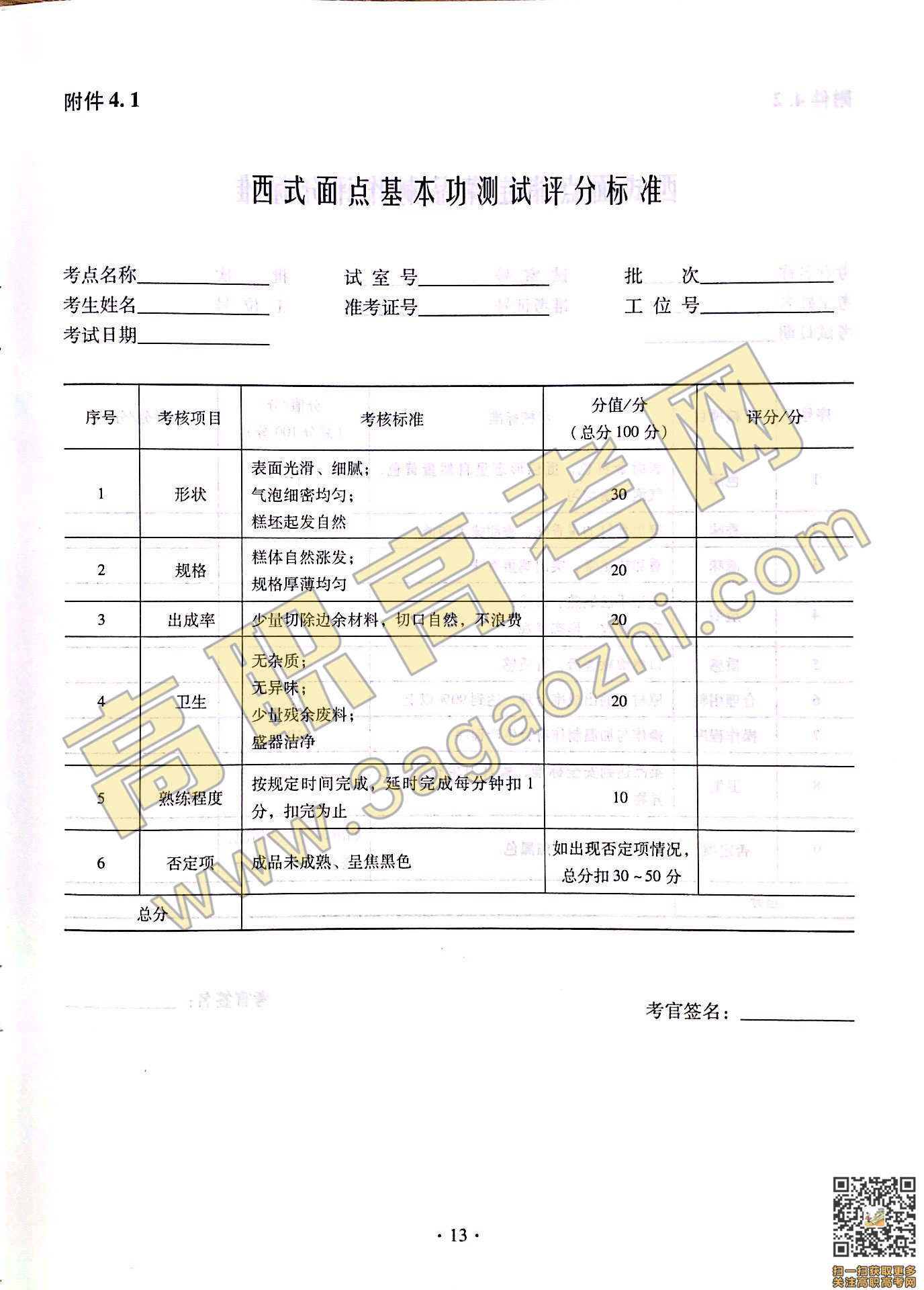 2019年高职高考《烹饪》课程技能证书考试大纲及样题