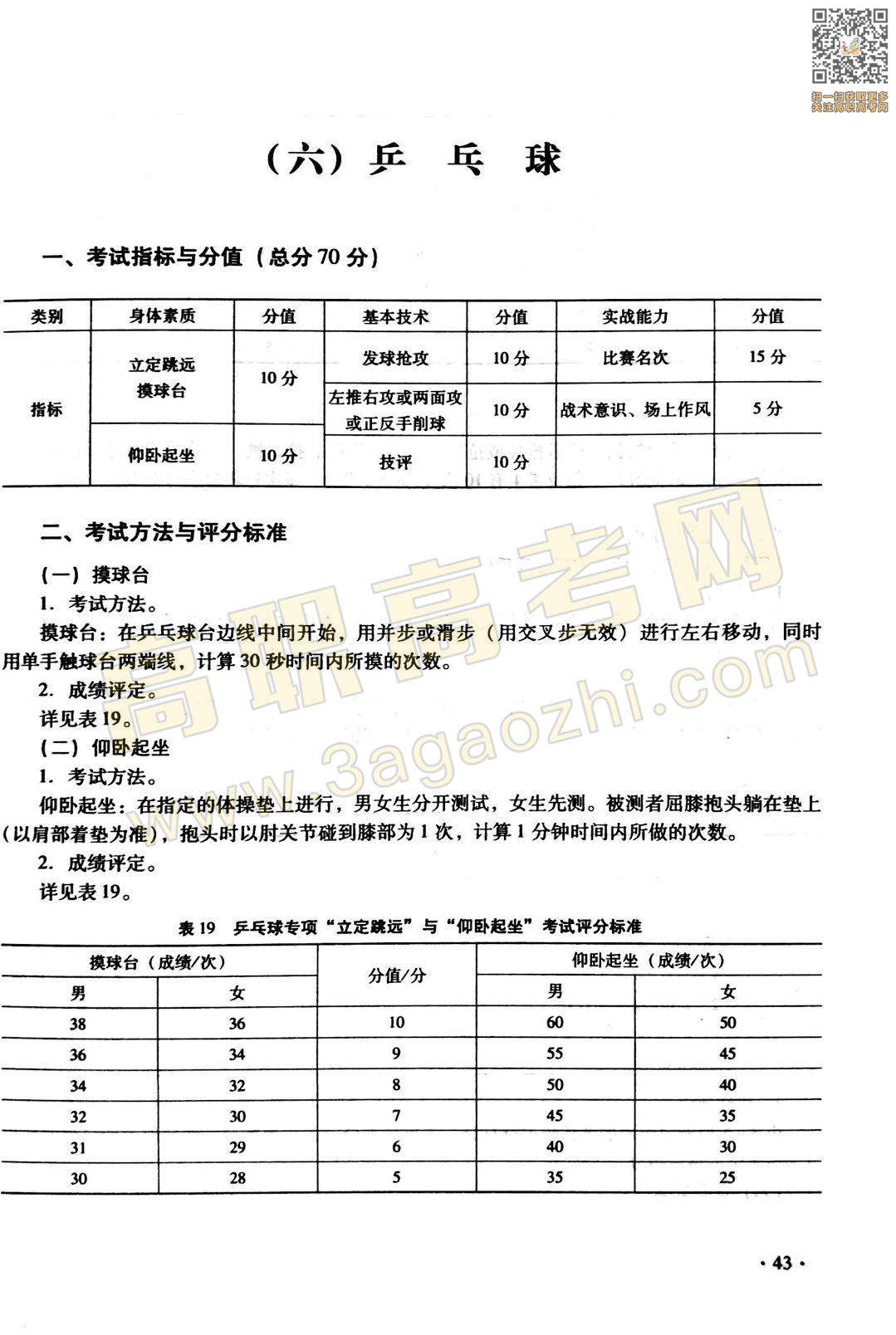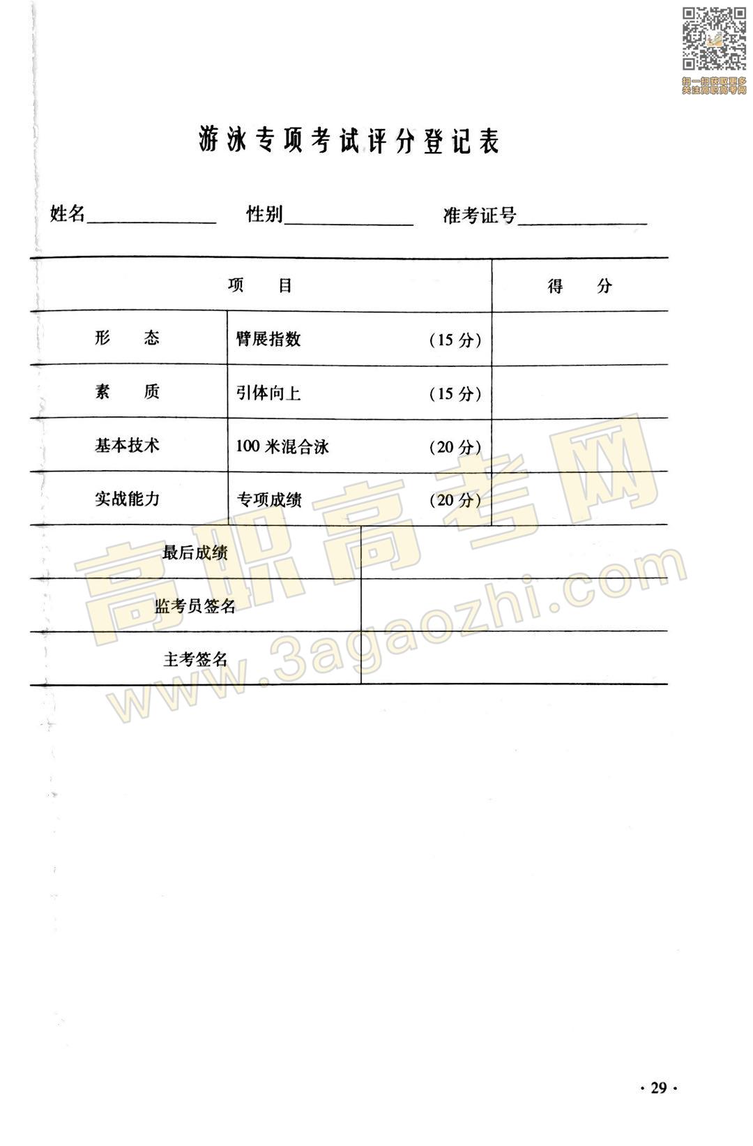 体育证书考试内容分为身体素质考试(占总分的30%)