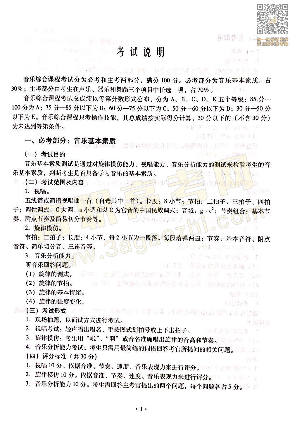 » 音乐综合课程证书,2020年广东中职技能课程考试大纲及样题